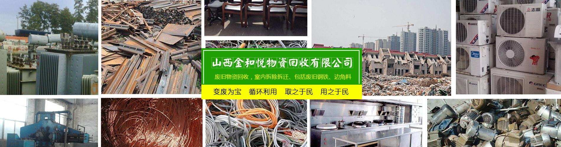 山西金和悅物資回收有限公司是一家從事廢舊物資回收,整廠設(shè)備打包回收的公司。主要可回收社會各行各業(yè)的廢舊物資,包括廢鋼廢鐵/廢銅廢鋁/稀有金屬/廢不銹鋼/廢舊機(jī)械設(shè)備/電線電纜/電池電瓶回收以及廢舊廠房整體設(shè)備打包回收。免費(fèi)上門估價(jià),現(xiàn)場付款,可帶工人上門,清理庫房。我公司立足于環(huán)保,利用閑置的資源,變廢為寶,循環(huán)利用,取之于民,用之于民,讓有效的資源得到合理的利用,充分體現(xiàn)它的價(jià)值。公司堅(jiān)持“以質(zhì)量求生存,以信譽(yù)求發(fā)展”的基本原則,為山西及周邊地區(qū)的企業(yè)、單位和個人提供安全、快捷的服務(wù)。歡迎各界有廢料或需要拆除的人士來電洽談業(yè)務(wù)!